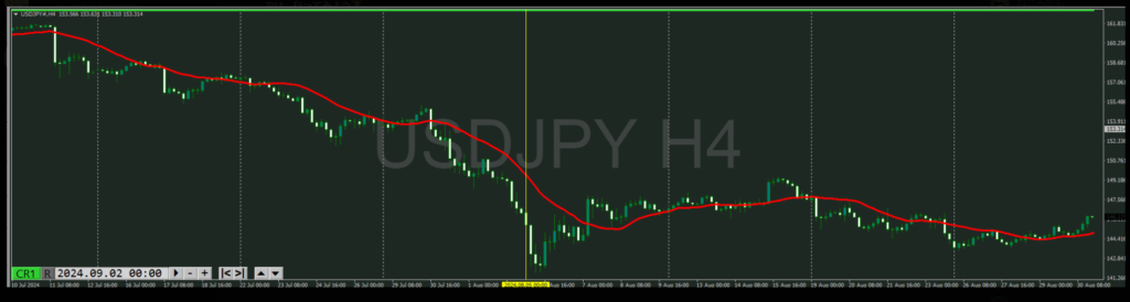 4時間の移動平均線もロウソク足のしたにあり買い支えとして機能しやすい。