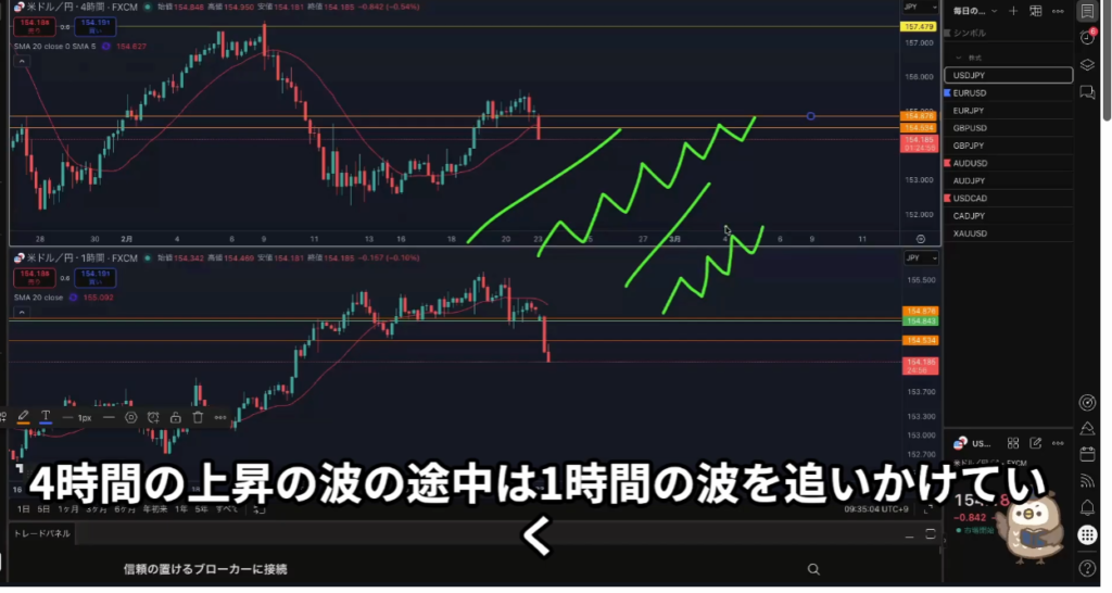 日足の上昇の波の途中は4時間のトレンドを追いかけていく!