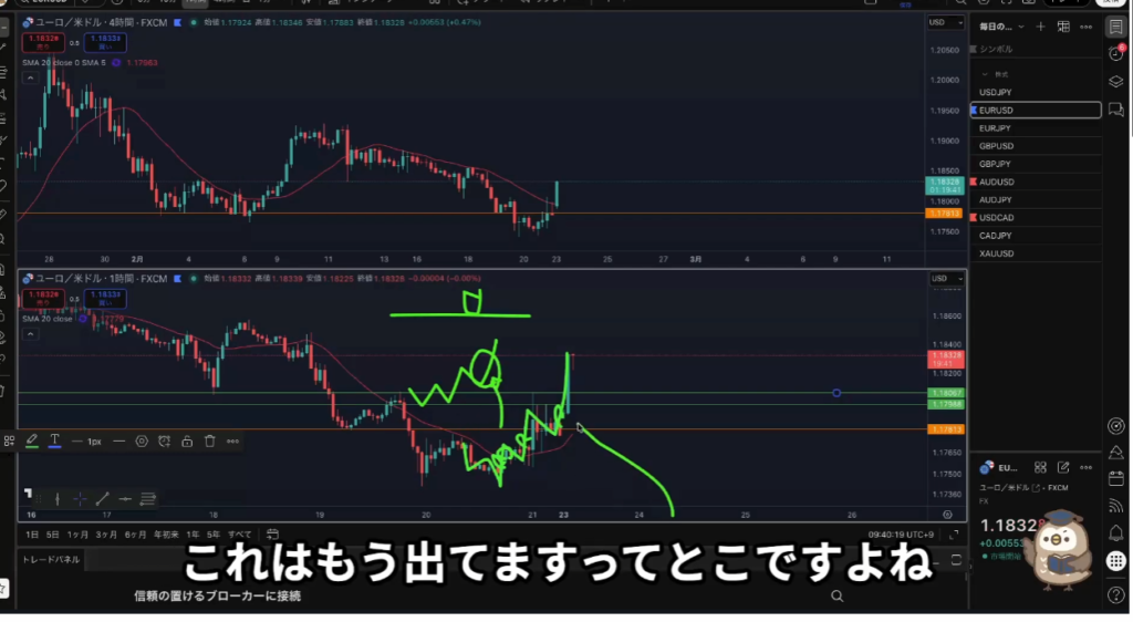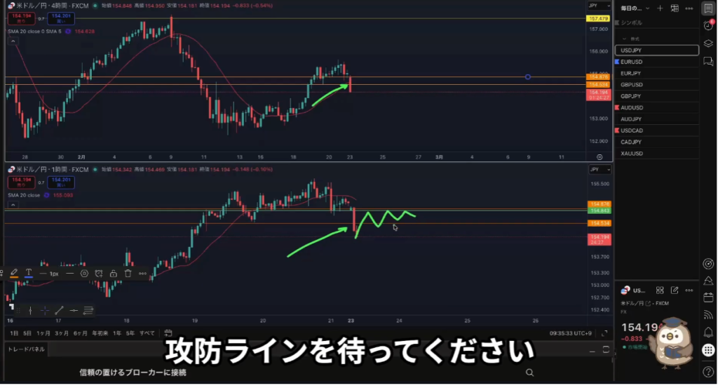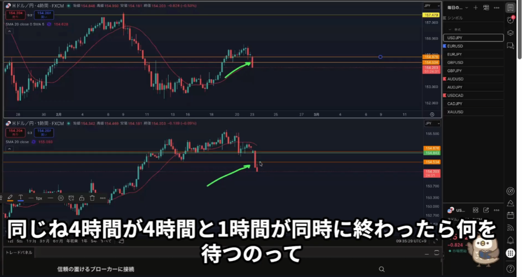 4時間、1時間が同時に割ってきたときは1時間の攻防ラインを待つ!