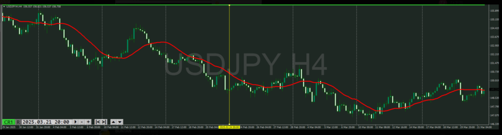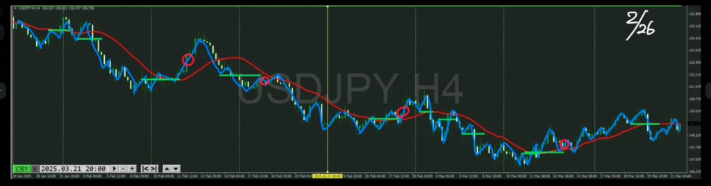 赤色の時は赤色水平線の上に4時間の押し目買い勢力がいる。