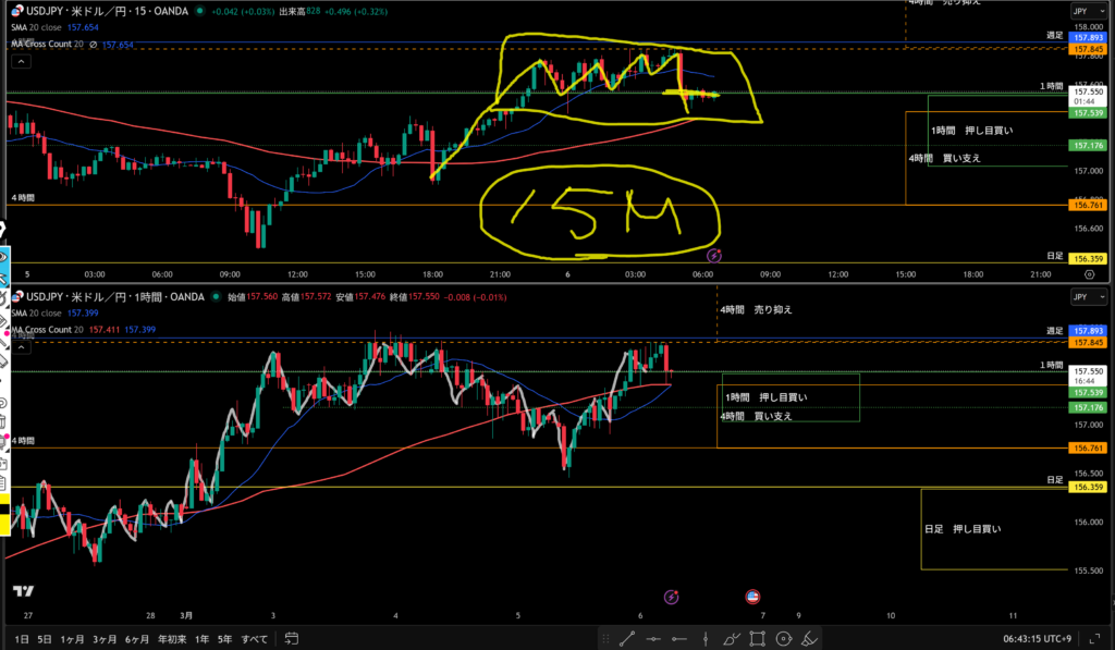 4時間の戻り売りを狙いたいので、1時間は添付写真の黄色丸の位置を狙いたい!