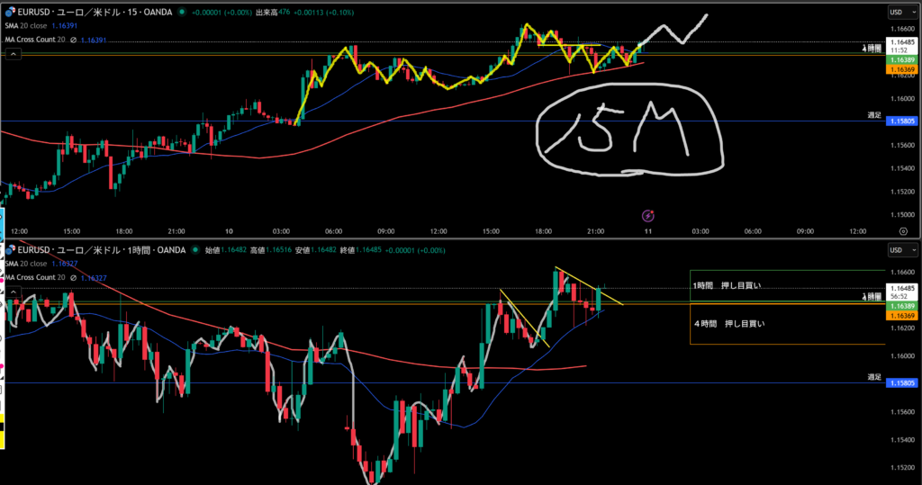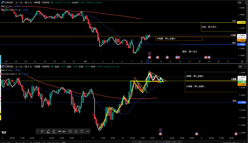 黄色水平線の上に日足の押し目買い勢力がいる。