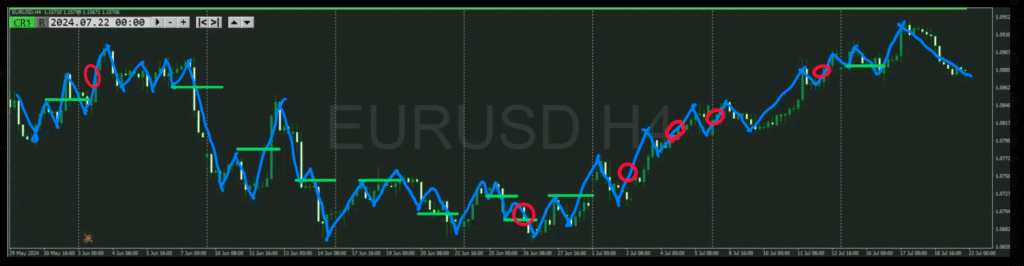 そうすると転換ポイント(方向)も増えて赤丸のポイントも増えた。エントリーできるポイントが増える!