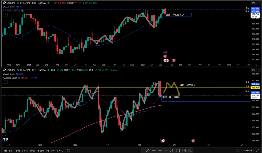 週足の押し目買いエリアまでの下落なので意識されて上昇に反転しそう!