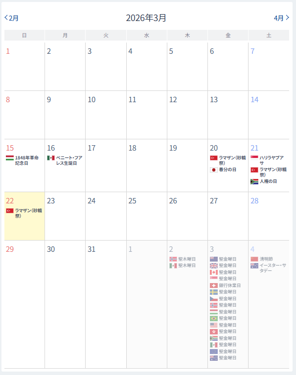 金融市場休日カレンダー【海外・国内】|みんかぶ FX/為替