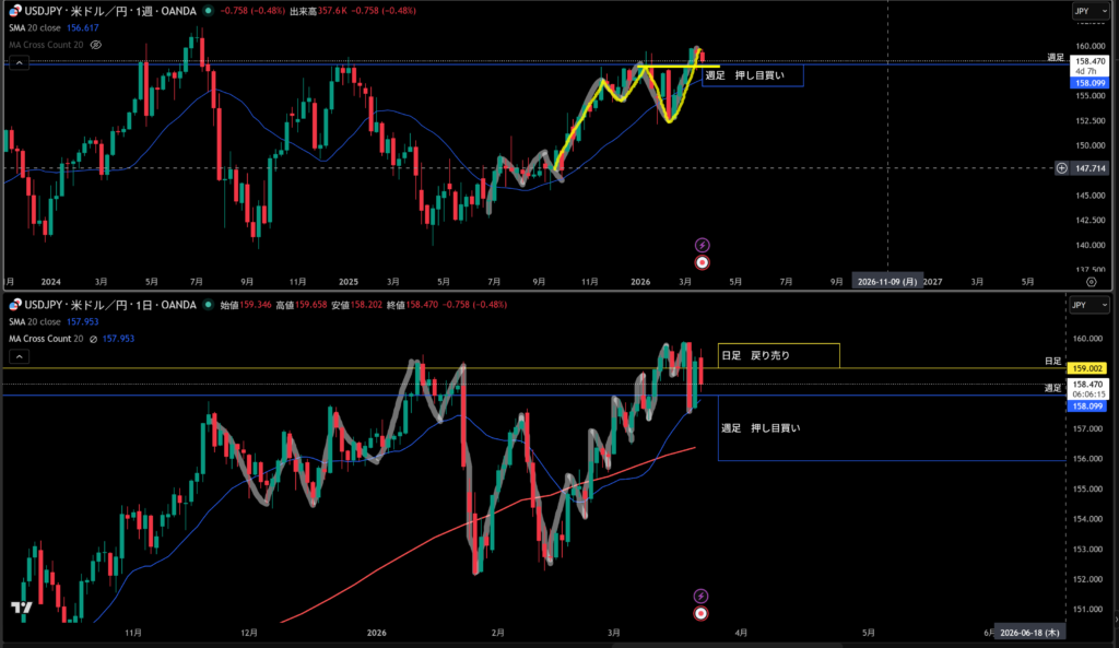 週足の買い支えとして機能しやすい。
