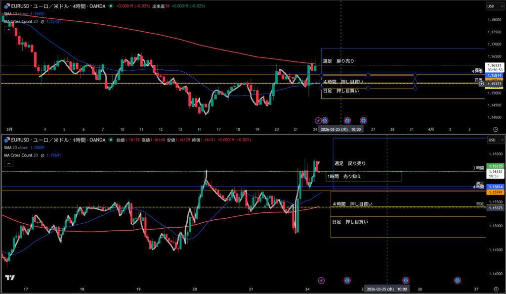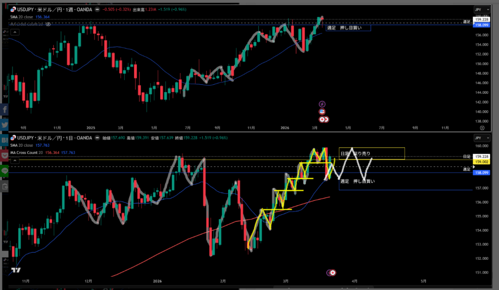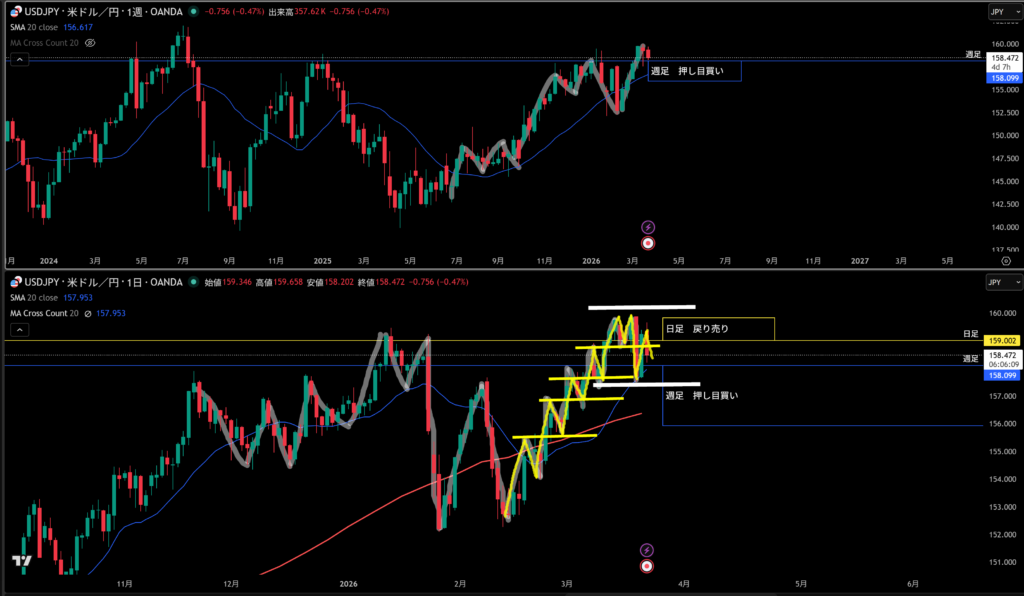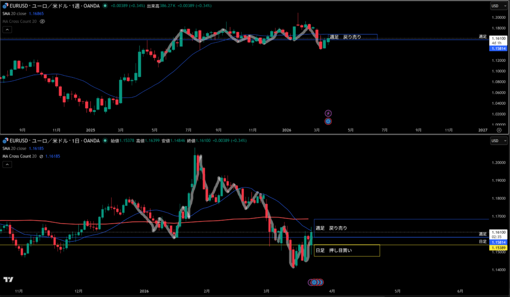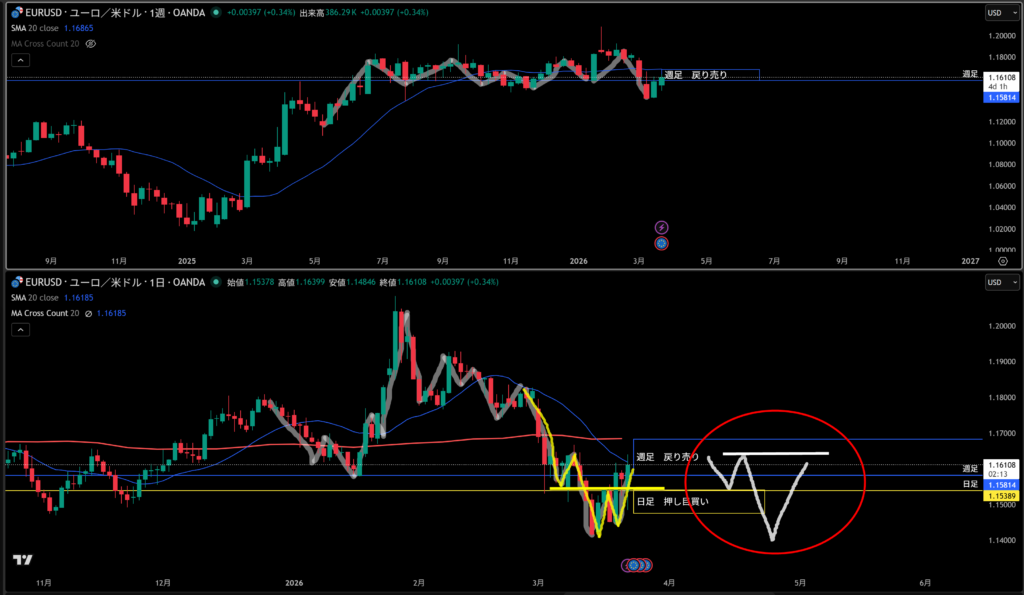 そこに週足の戻り売り勢力エリアもいる!