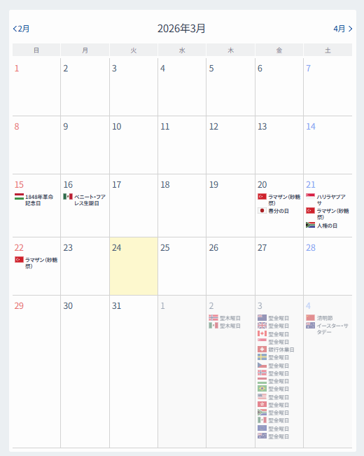 金融市場休日カレンダー【海外・国内】|みんかぶ FX/為替