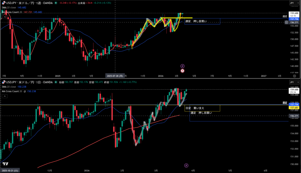 週足の買い支えとして機能しやすい。