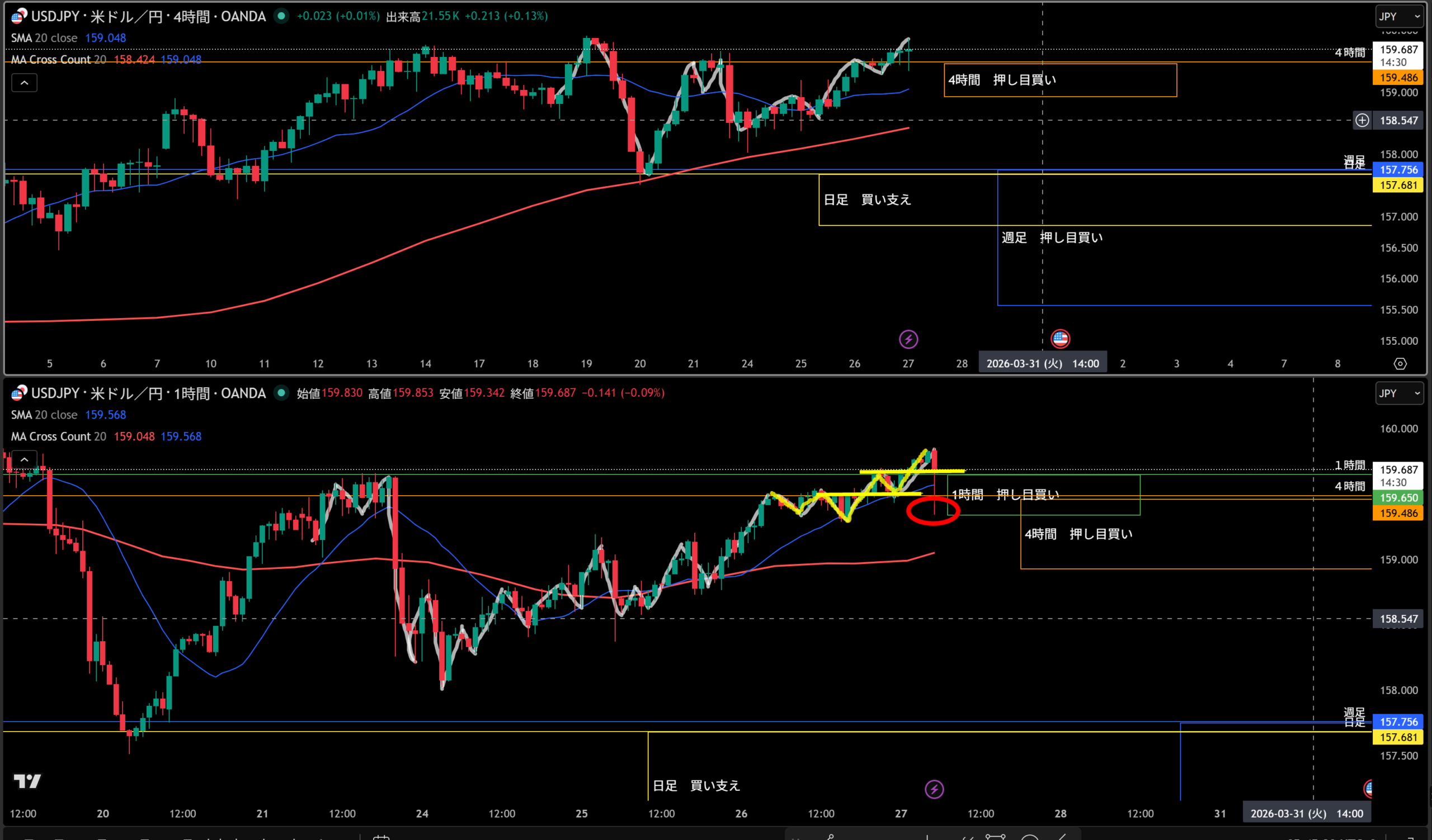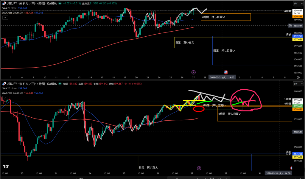 4時間押し目買い!