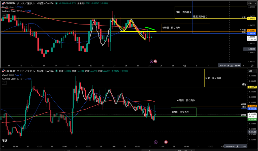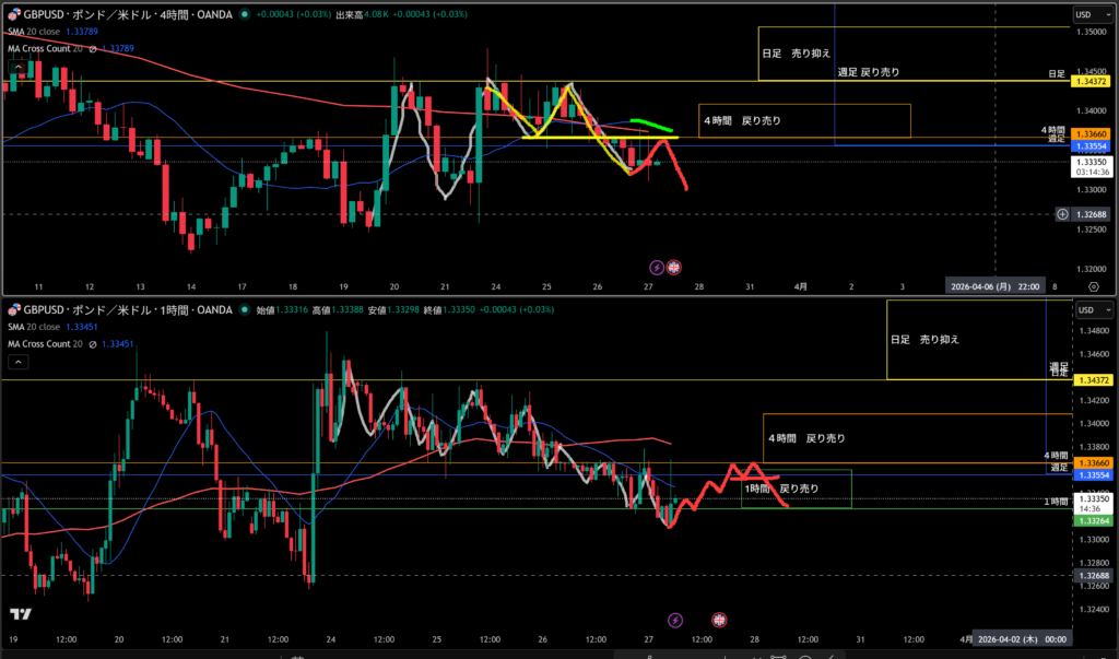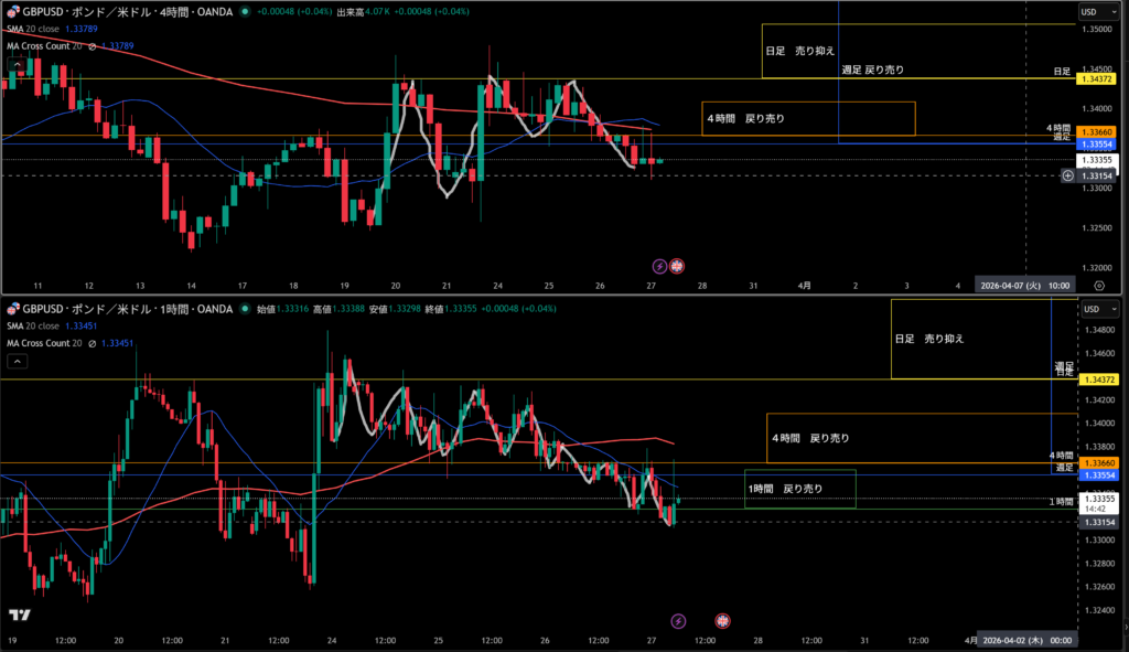 4時間足の売り抑えとして機能しやすい!