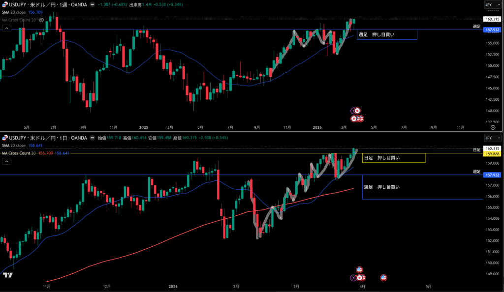 日足の押し目買い勢力気にしていく!