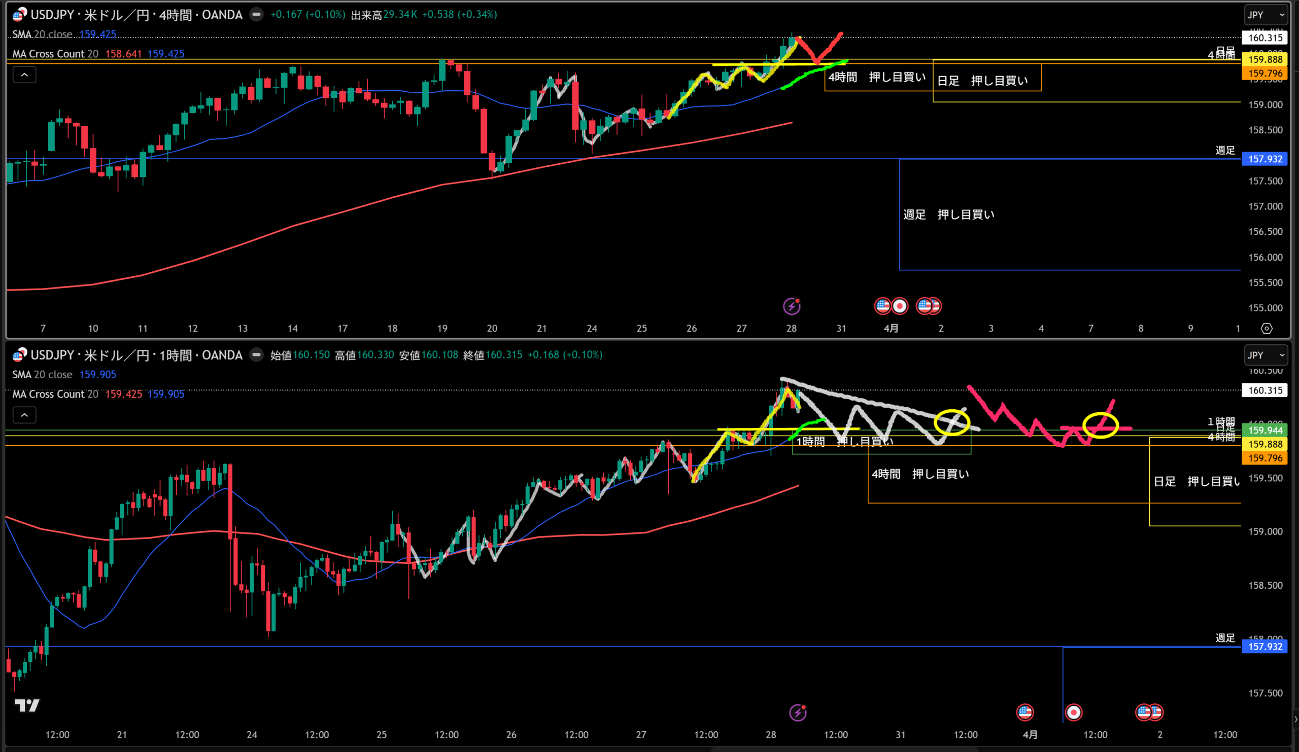 4時間押し目買い!