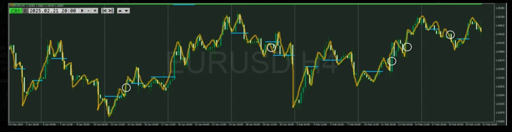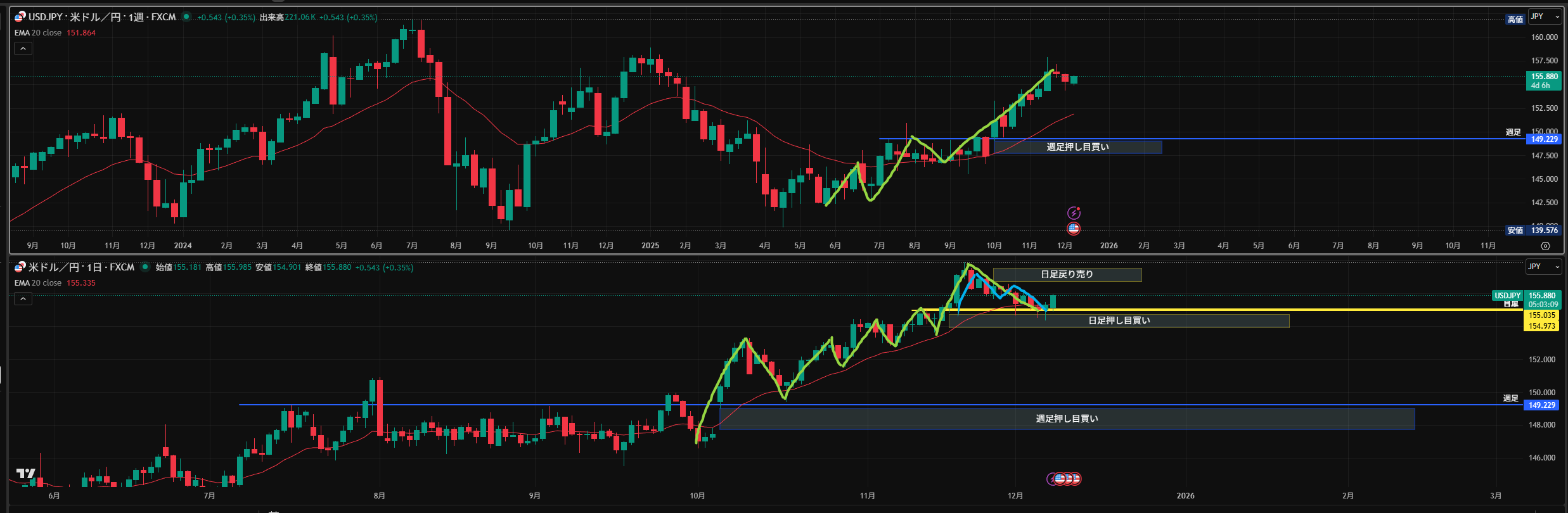 黄色水平線: 下に押し目買い勢力