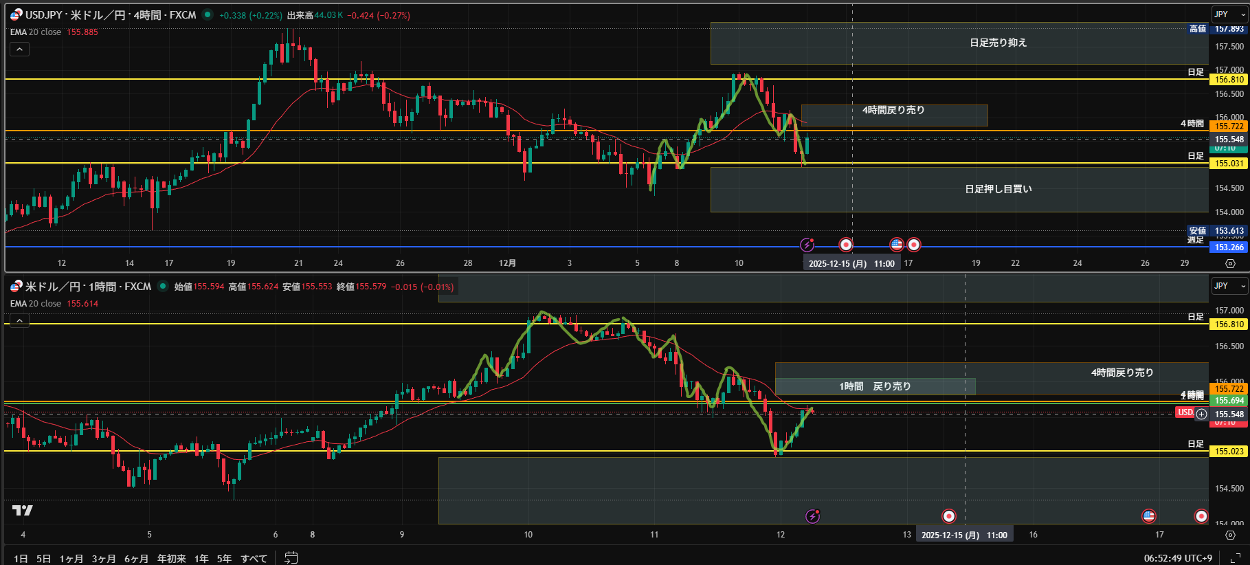 4時間足 方向 下