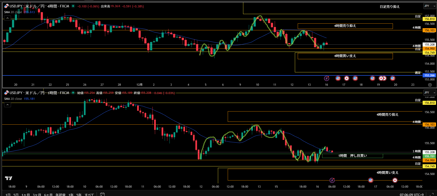 (方向は下だが 1時間が上昇に転換したので4時間は波の終わりから波の途中になった、この判断で大丈夫か不安)