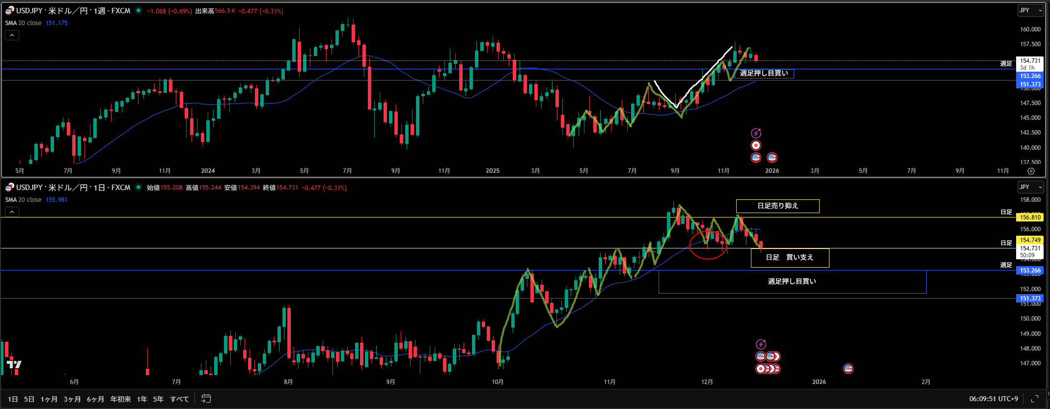 日足 方向 下 下落 波の途中