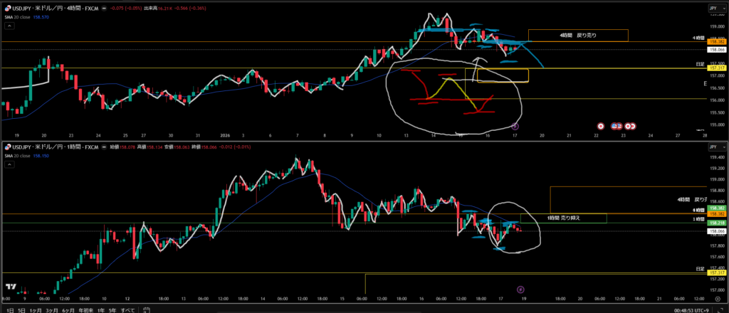両勢力も売り抑えているのでこのまま下落していくのか時間経過を見ていく!