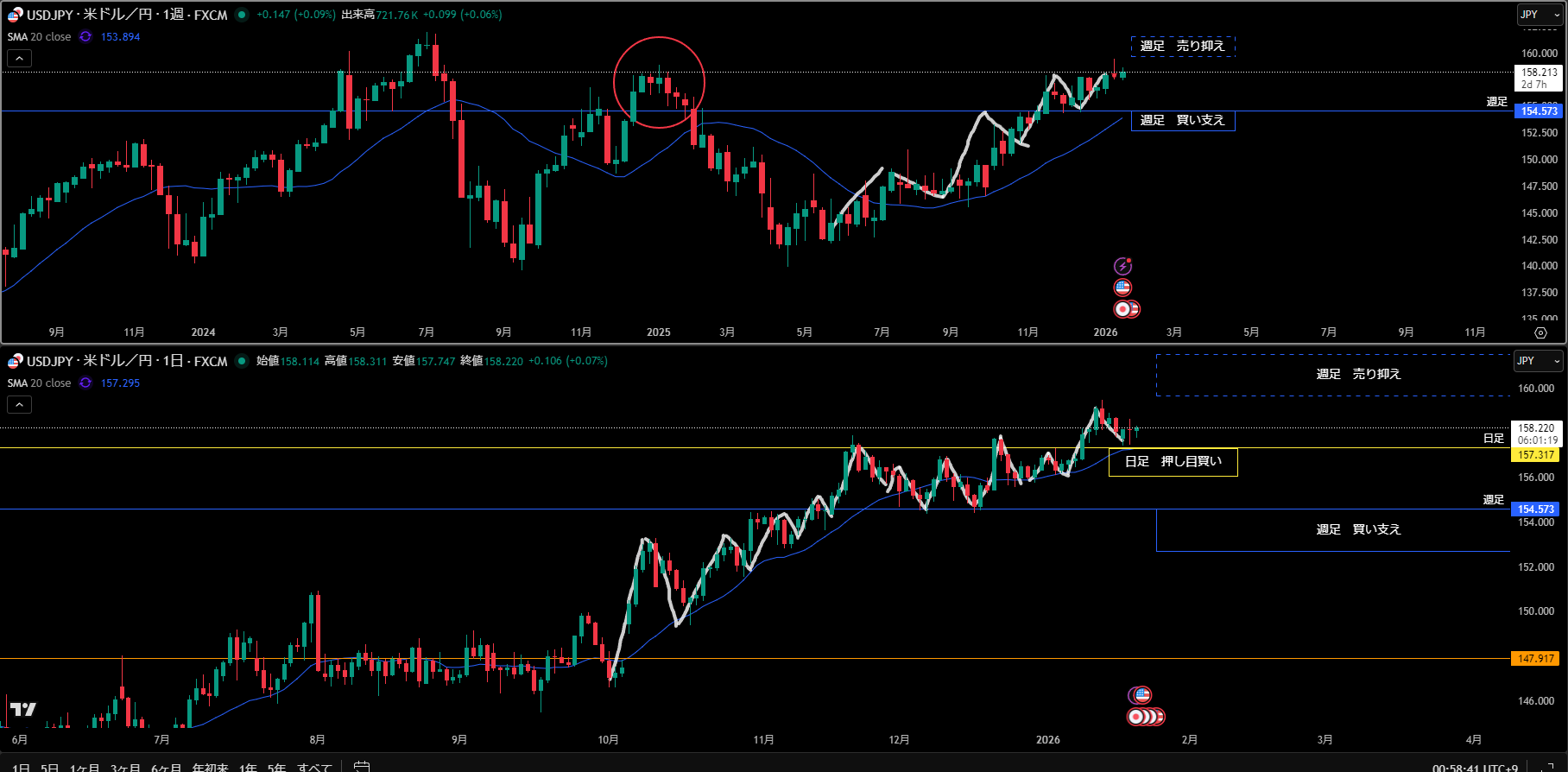 MAと水平線同じ位置にいる!水平線押し目買いの位置、MA買い支えの位置、両方の勢力が買いの勢力!