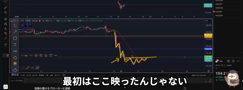 *引いていた水平線がロウソク足を貫通している!