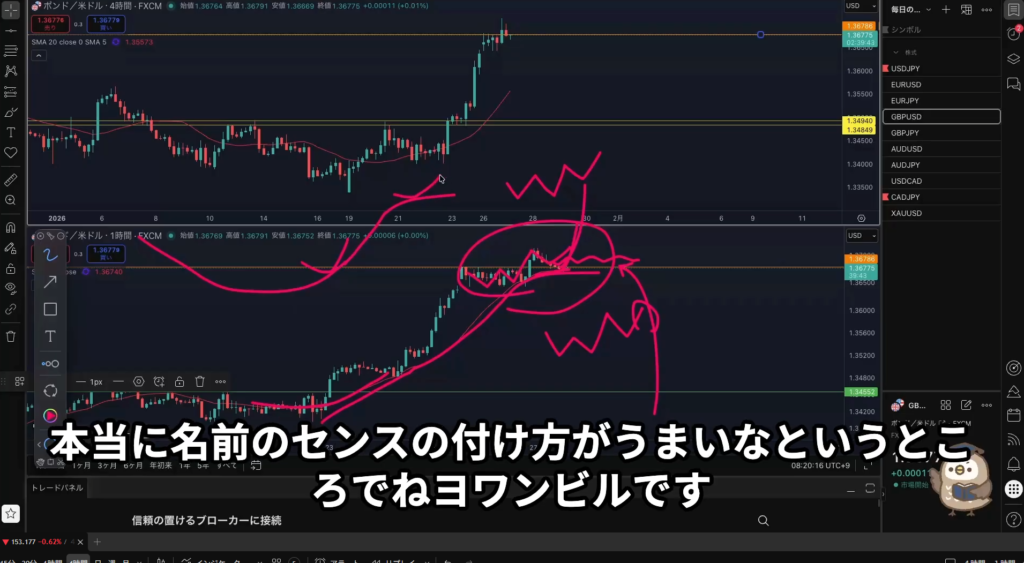 ドル円1時間足のダウカウントが塾長と同じように視えていて安心した!