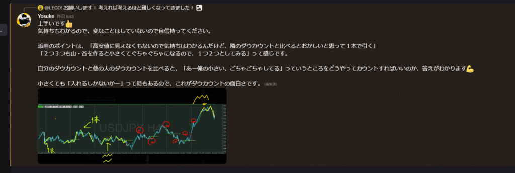 自分のダウカウントを見返してみると、つい“カウントしたがっちゃって”、結果的にぐちゃぐちゃになっていたり、波のサイズ感もあまり意識できていなかったりすることに気づきました。