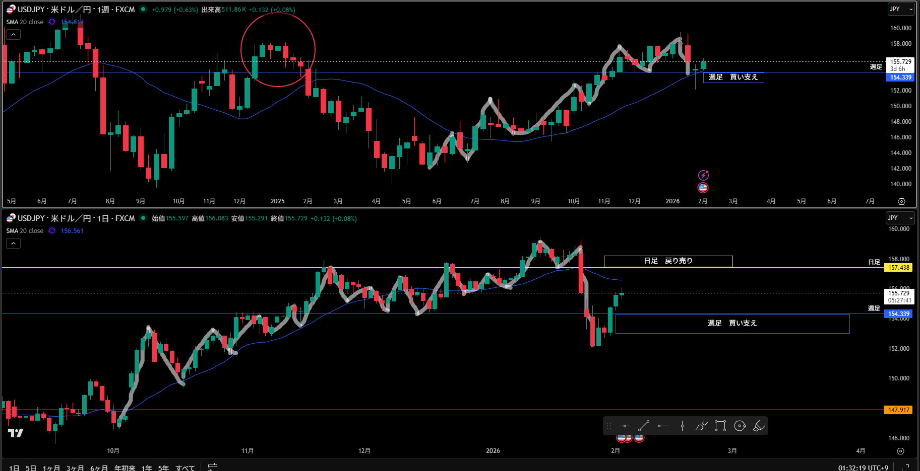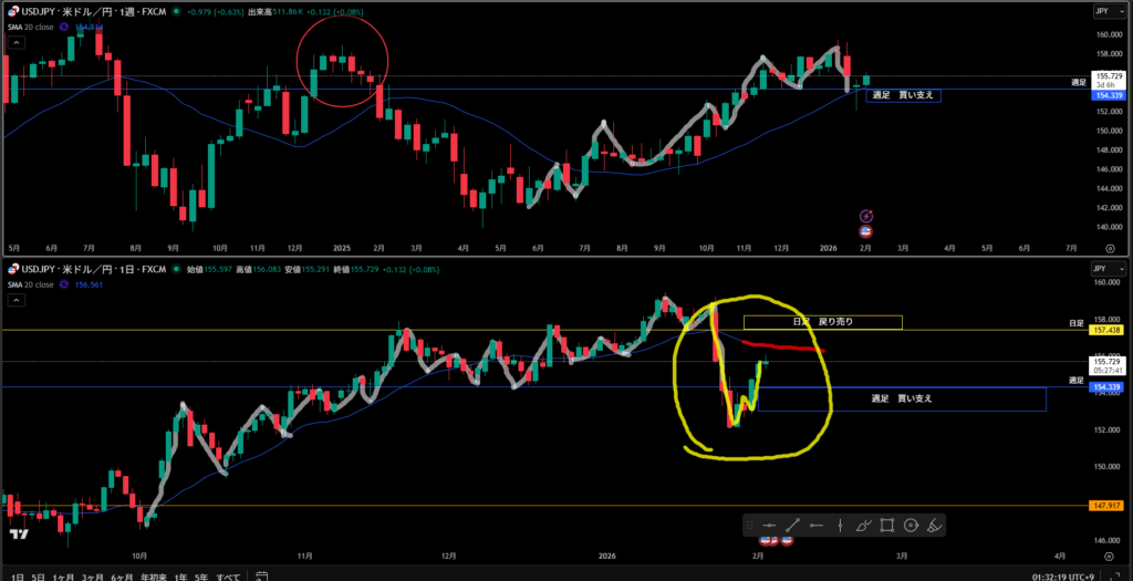 日足の戻り売り勢力のラインまで目安になるものが何もなく、シナリオを書く特にどう描くのか分からなかった!