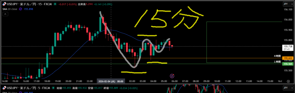 *15分がトレンド転換してきたら1時間は波の根っこからの波の途中に変わる?