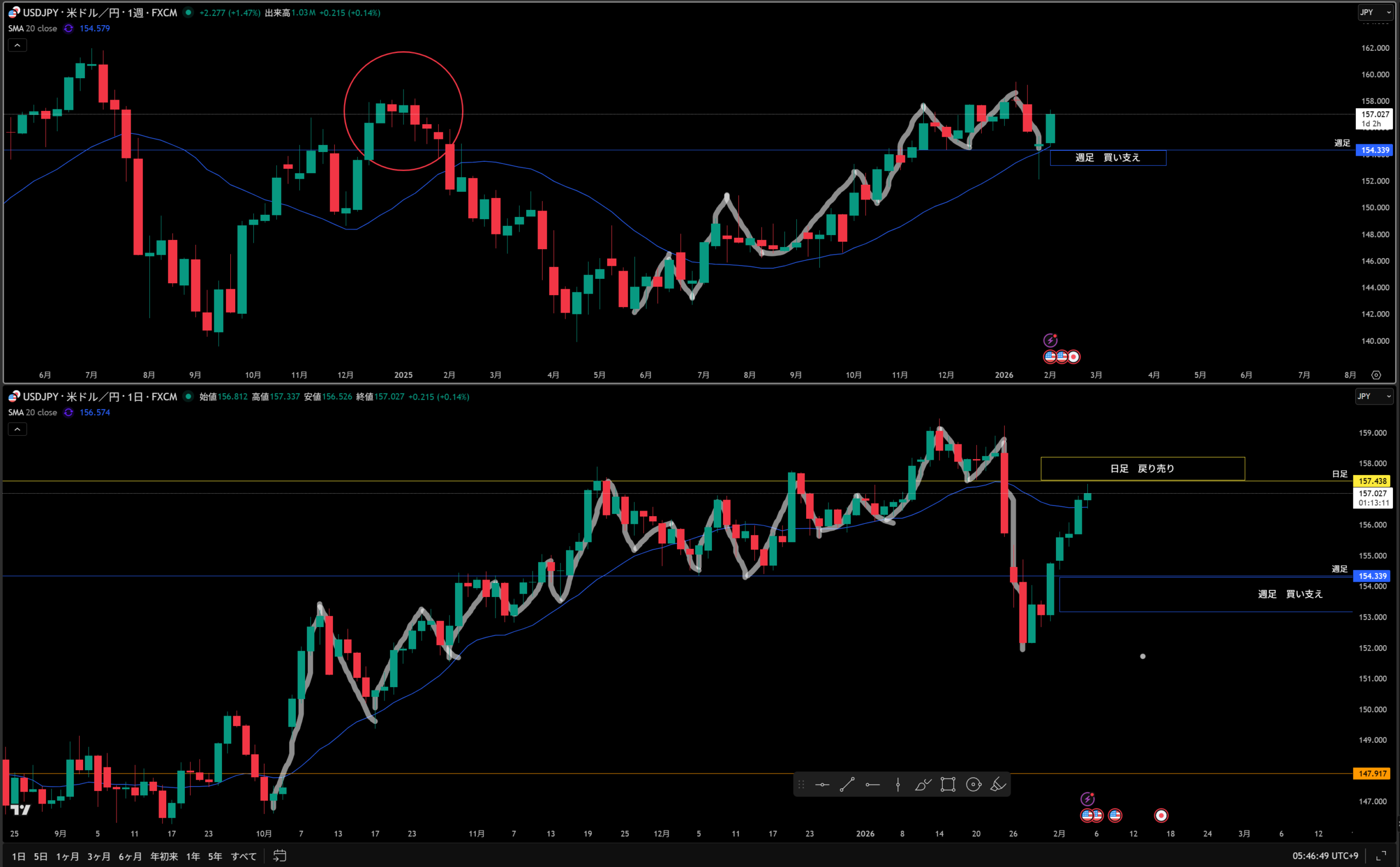 移動平均線は上向き週足の買い支えとして機能しやすい。