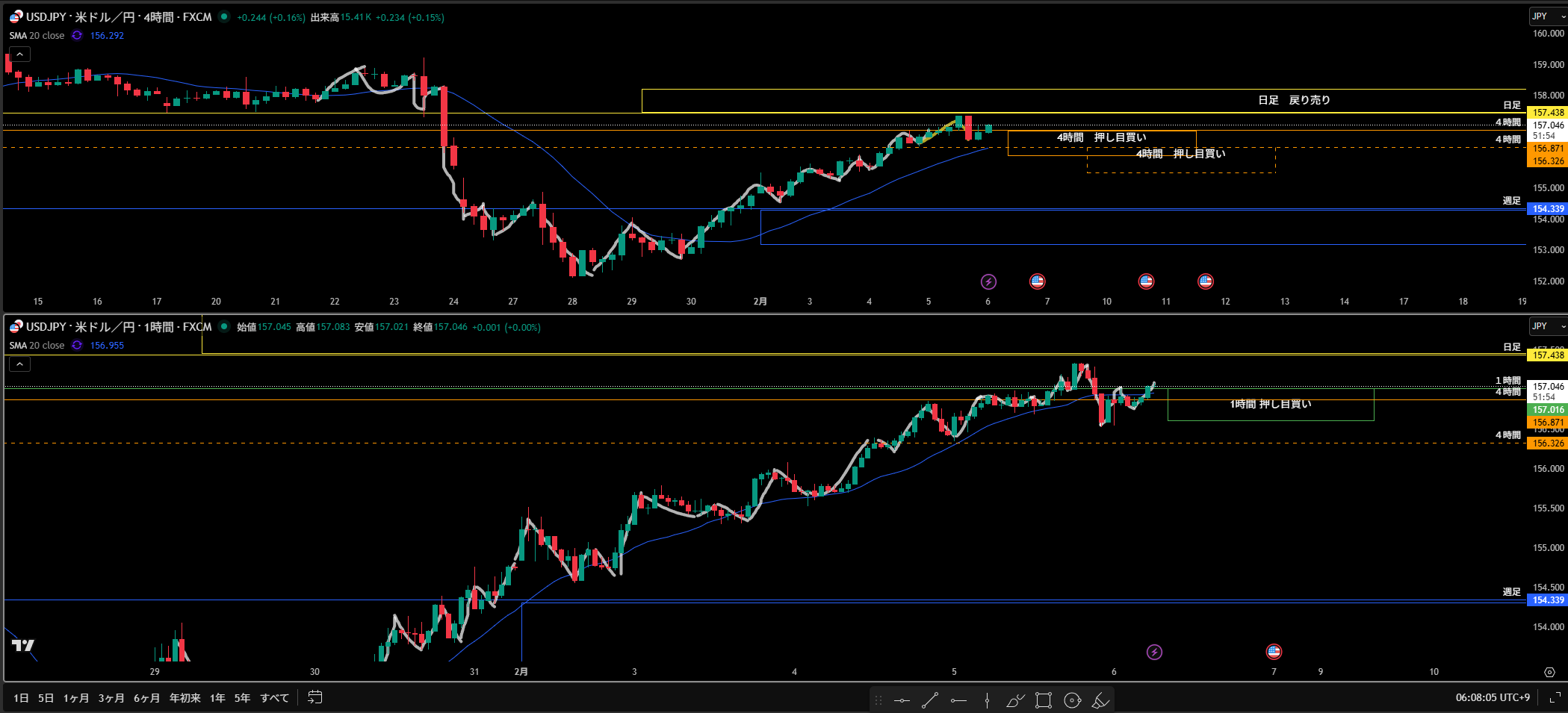 前回高値をロウソク足実体抜いてきてはいるので押し目買いの水平線は消したいが今後後の動きをみたいので残しておく!