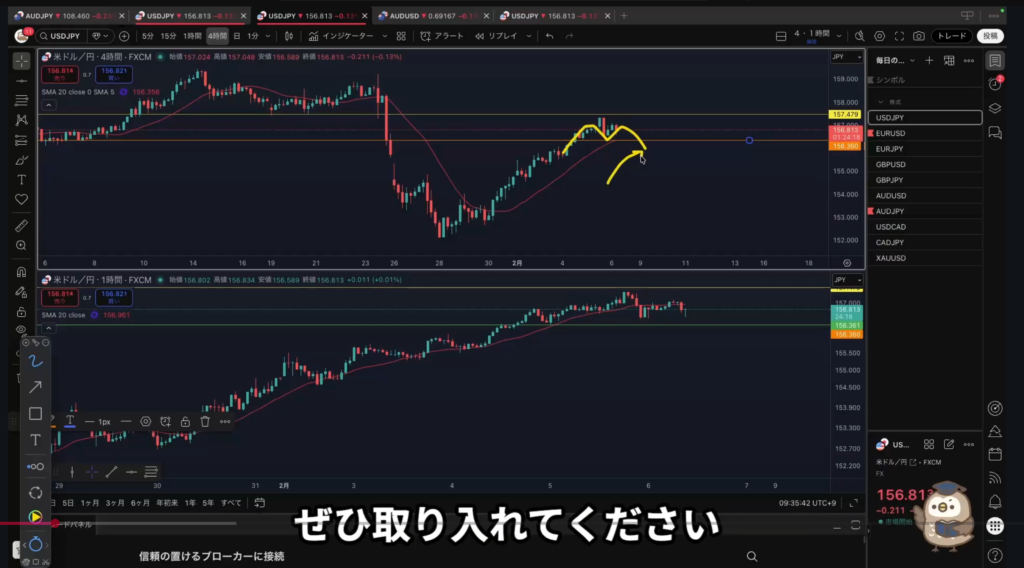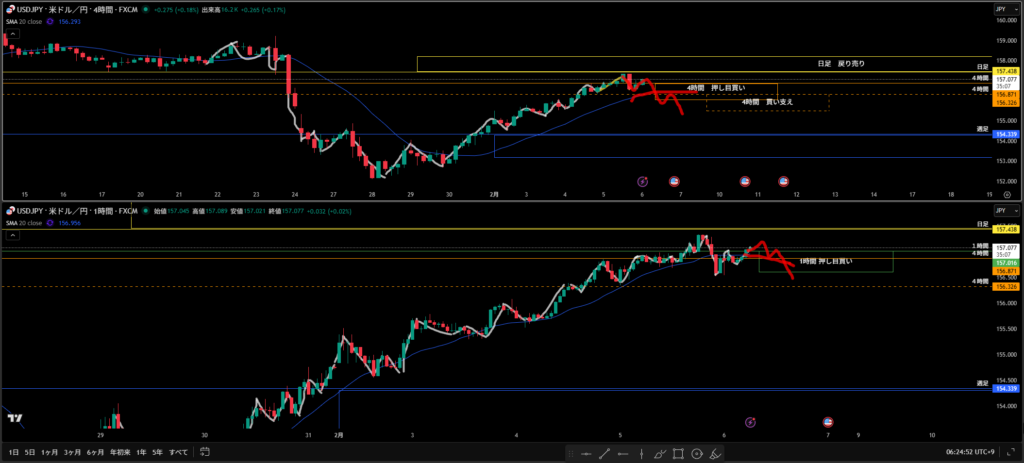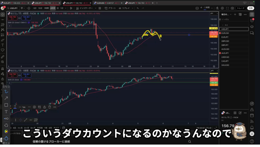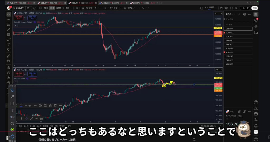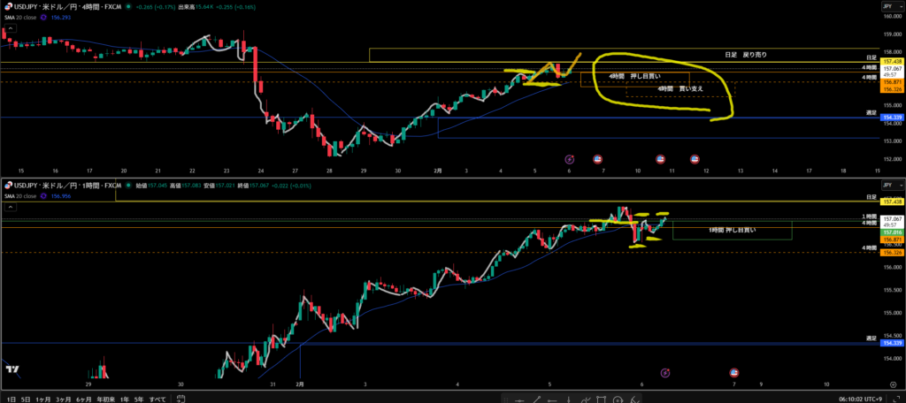 黄色水平線の上に日足の戻り売り勢力がいる。