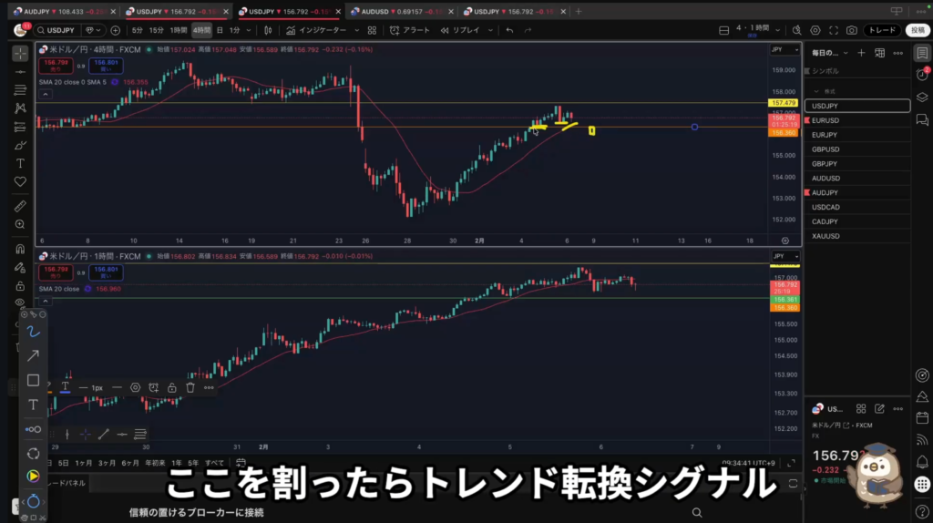 抜けたからトレンド転換だー見つけた見つけたー僕が誰よりも早く見つけた!ってなりそう!