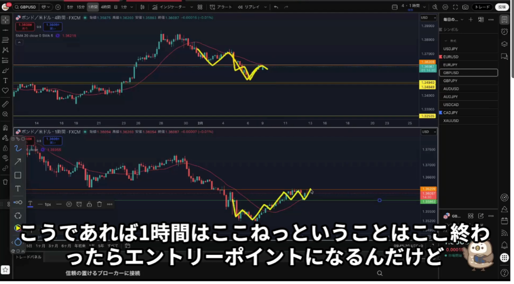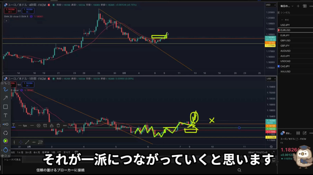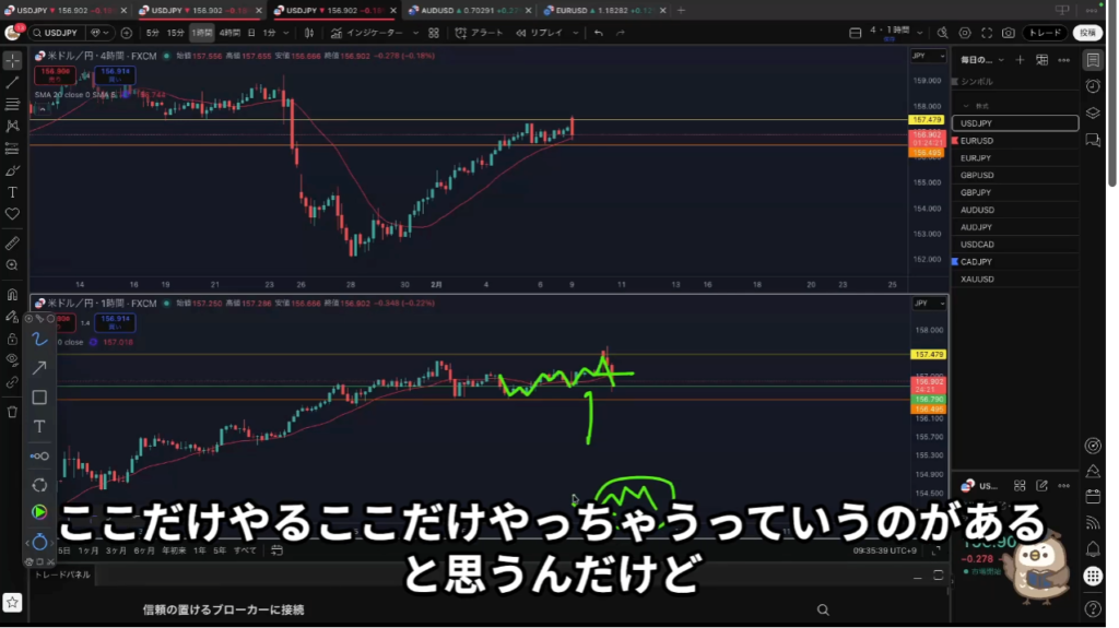 週足押し目買い、日足押し目買い、4時間足と1時間足もおしめがいなので上昇イメージでシナリオを考えました。