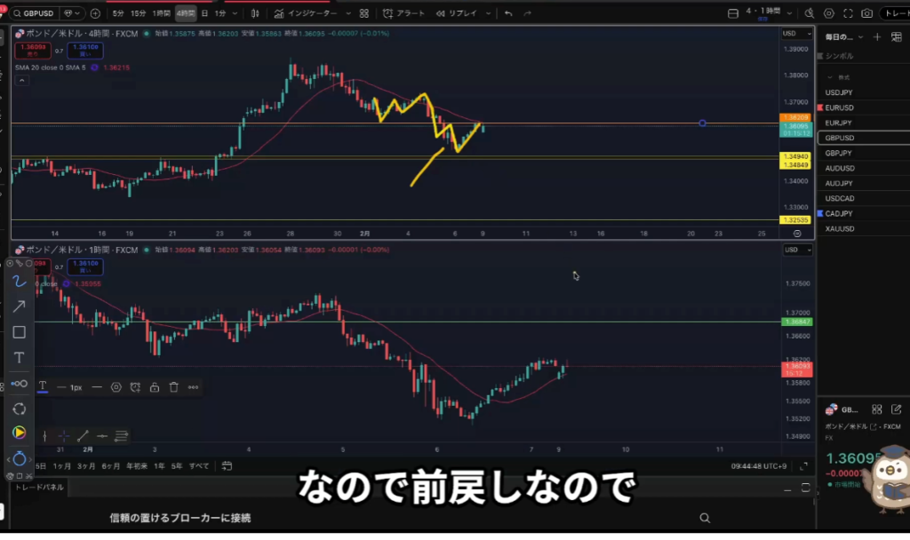 移動平均線に買支えられただけ、水平線の押し目買い勢力がいるよねで上昇していない!